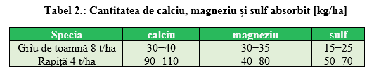 Răspunsul este simplu, și totodată complicat. Deoarece se apropie etapa dezvoltării intensive, crește necesarul plantei față de toate elementele nutritive. În principal trebuie suplimentate acele elemente nutritive, care se află în cantitate minimă raportat la necesar. Dacă nu cunoaștem aceste cantități, deorece nu avem la dispoziție rezultatele analizelor plantei din această perioadă, atunci putem porni de la premiza că este oportună suplimentarea elementelor nutritive care sunt solicitate de plantă în cele mai mari cantități. Dar care sunt aceste elemente nutritive? Evident, macroelementele. În cazul în care au fost aplicate toamna în cantități corespunzătoare, se poate renunța la fosfor și la potasiu. Adică în afară de azot mai rămâne sulful, calciul și magneziul (tabel 2.).
