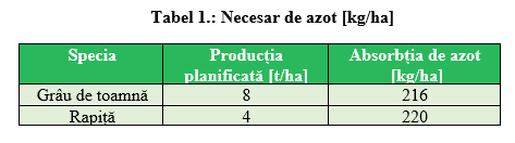 Cantitatea de substanță activă care trebuie aplicată reprezintă un aspect important. Pentru acesta trebuie să avem în vedere nu doar prevederile în vigoare, ci și necesarul plantei. Care este această cantitate? Să luăm în calcul necesarul grâului de toamnă și a rapiței, în baza necesarului specific de substanțe active (tabel 1.).